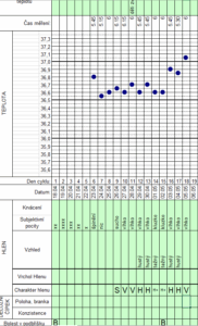 Lucka si STM tak oblíbila, že se stále sleduje, má za sebou už 14 cyklů. Občas mi pošle nějaký nestandardní záznam ke kontrole. Krásně vnímá, jak se na průběhu jejích cyklů podepisuje stres z práce nebo když s dětmi procházely častými nachlazeními. Umí si určit, kdy proběhla ovulace a kdy přijde další menstruace.
